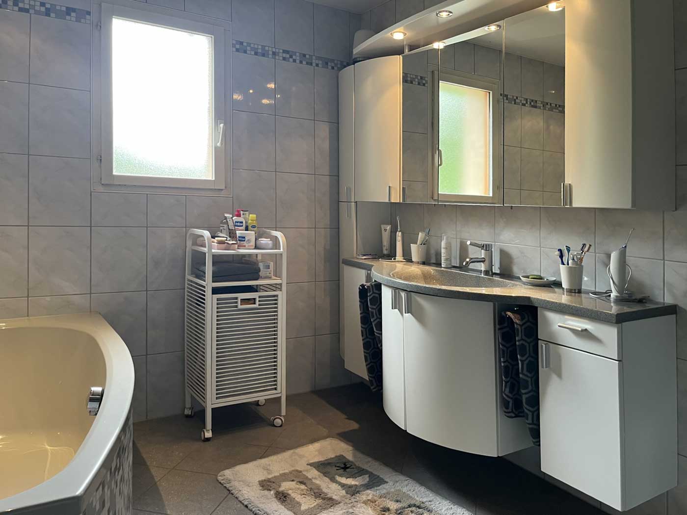 Von der Haustür eine halbe Etage nach unten geht es ins Untergeschoss: Hier befindet sich ein weiterer Wohnraum – aktuell als Büro genutzt. Daneben stehen Ihnen klassische Nutzräume wie Waschküche, Heizungsraum, Abstellräume und eine großzügige Garage zur Verfügung. Hier finden nicht nur Ihr Pkw, sondern auch Fahrräder, Motorräder oder sogar eine kleine Werkstatt ihren Platz.