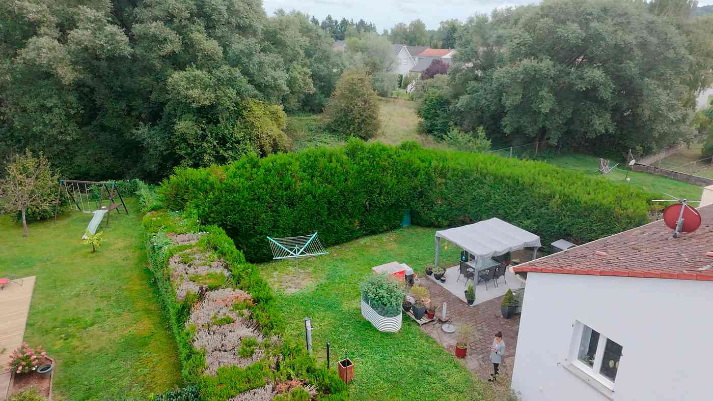 Der Garten hat eine angenehme Größe und ist aktuell durch eine dichte Hecke eingefriedet – so genießen Sie hier maximale Privatsphäre. Ein Hochbeet lädt zum Gemüseanbau ein, und auf der gemütlichen Gartenterrasse lassen sich laue Sommerabende in Ruhe oder mit Gästen wunderbar genießen.
