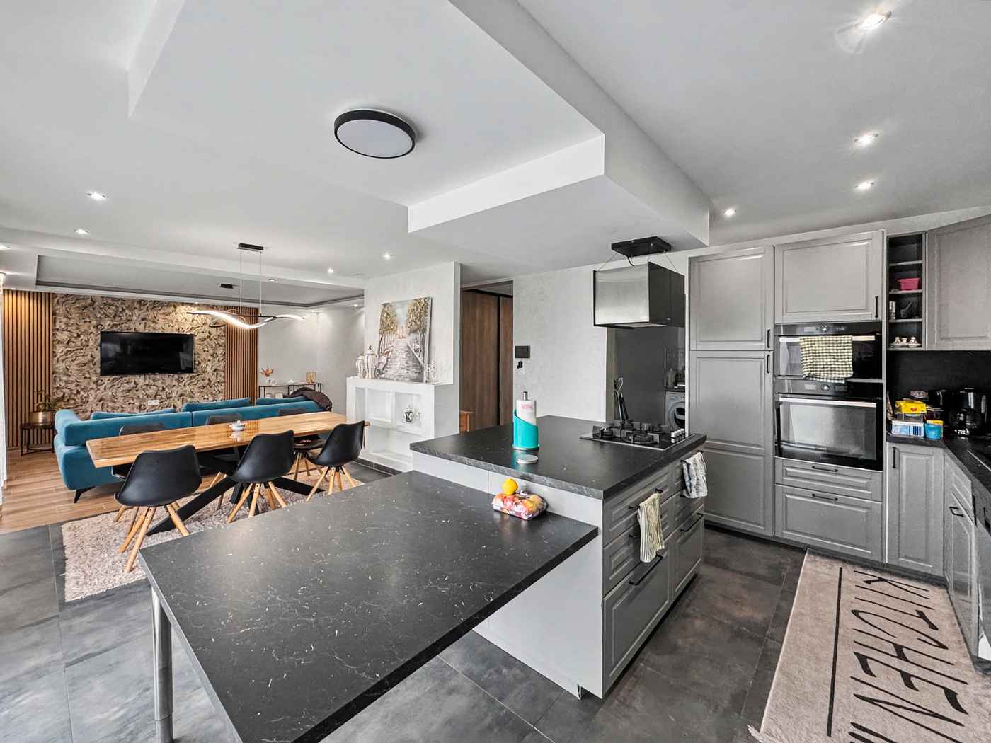 Die großzügige Terrasse erweitert den Wohnraum nach draußen und lädt zu entspannten Stunden im Freien ein – sei es beim Frühstück in der Morgensonne oder bei geselligen Abenden. Die hochwertige Einbauküche ist bereits Bestandteil des Angebots und überzeugt durch ihre moderne Ausstattung, klare Linien und großzügigen Stauraum – ein Ort, an dem Kochen und Zusammenkommen gleichermaßen Freude bereiten. Insgesamt präsentiert sich die Ausstattung dieses Hauses auf einem gehobenen Niveau und erfüllt auch anspruchsvolle Wohnwünsche – ein Zuhause, das Komfort, Qualität und Stil auf überzeugende Weise vereint.