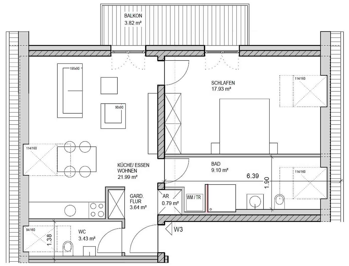 | W-1 | EG, 3 ZKB, 2 Terrassen | 89,30 m² | 436.600 | verfügbar |