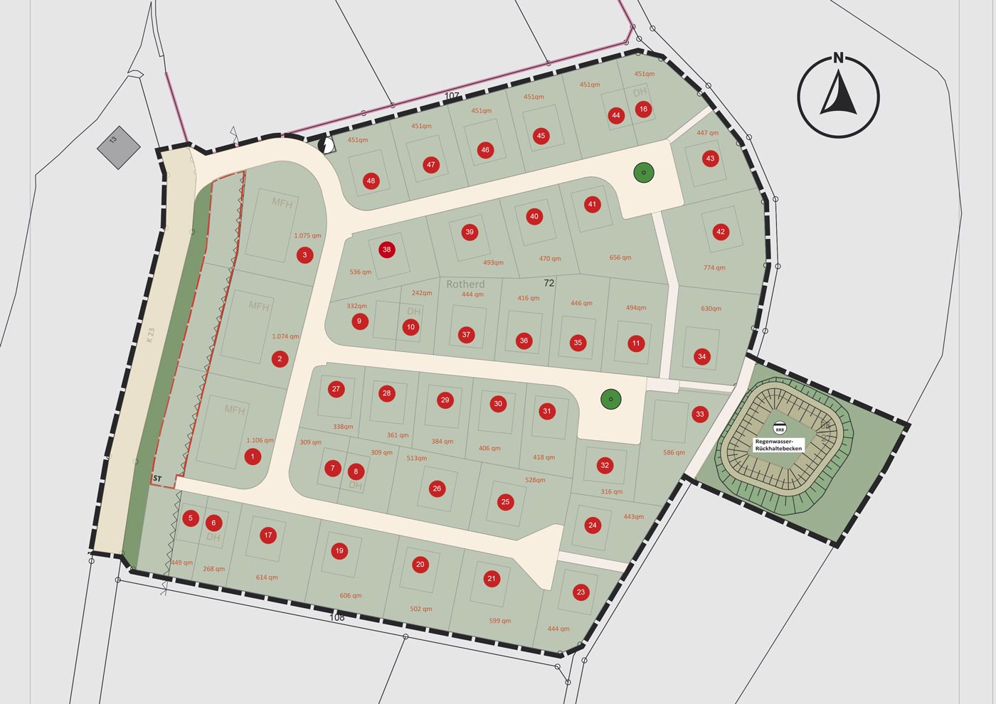 Im Wohngebiet Rotherd in Newel entstehen 41 attraktive Baugrundstücke, die Ihnen vielfältige Möglichkeiten für Ihr Eigenheim bieten. Ob Einfamilienhaus, Doppelhaushälfte oder Mehrfamilienhaus – hier realisieren Sie Ihren Wohntraum in einem modernen und familienfreundlichen Umfeld.